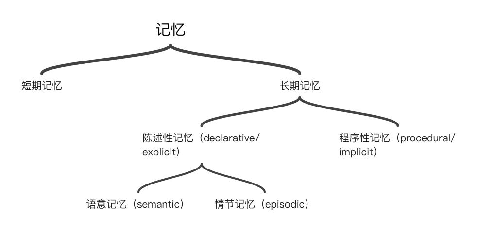 人类的记忆体系很复杂。大体来说记忆由长短期记忆构成,短期记忆我们在《如何提高智商》里说过,主要用于解决眼前的事务,所以也有学者称之为工作记忆(working memory)。长期记忆用于持久记忆。最近的研究显示,短期和长期记忆似乎同时形成,但短期记忆最初占主导地位,然后迅速消退。